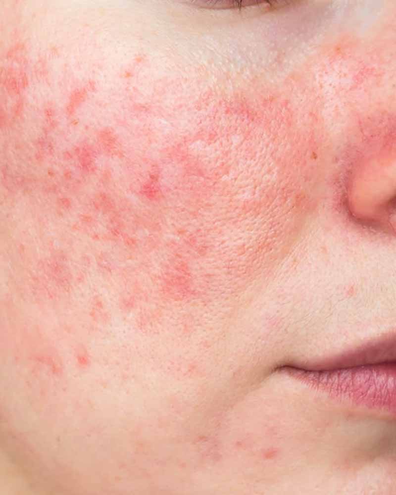 Ερυθηματώδης: ερυθρότητα και ορατά αγγεία στο πρόσωπο. Αίσθηση ξηρότητας, οιδήματος, ευαισθησίας και χαρακτηριστικό αίσθημα έξαψης στο κέντρο του προσώπου.